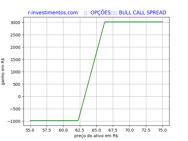 Neste exemplo, vamos usar a ação da VALE3 como ativo-objeto. Assim, a montagem da estrutura consiste na compra de uma certa quantidade de CALL ATM e na venda, da mesma quantidade, de outra CALL OTM, todas com o mesmo prazo de vencimento.